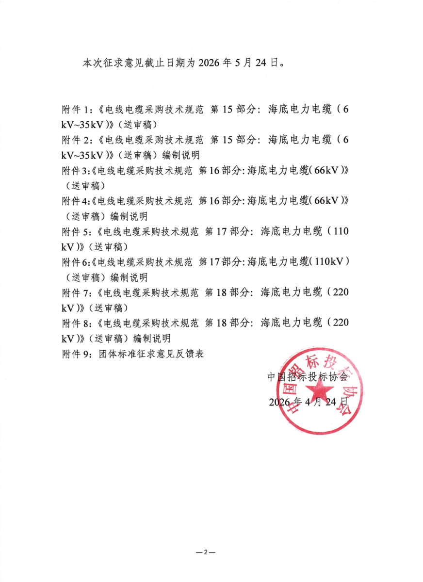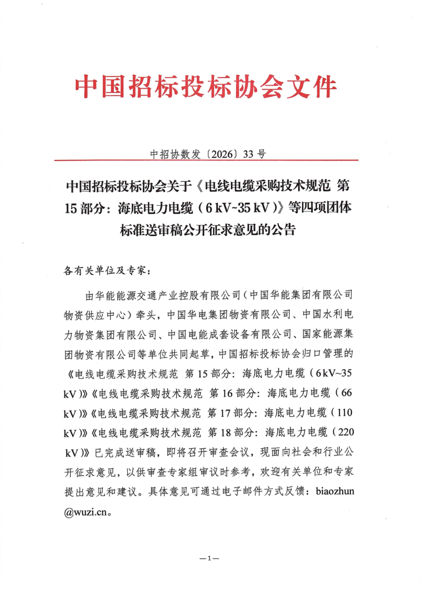 中招协《电线电缆采购技术规范》四项团标