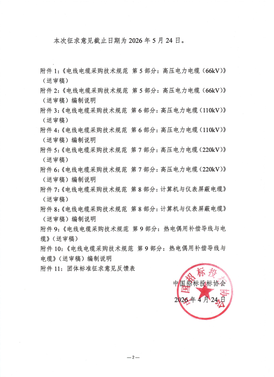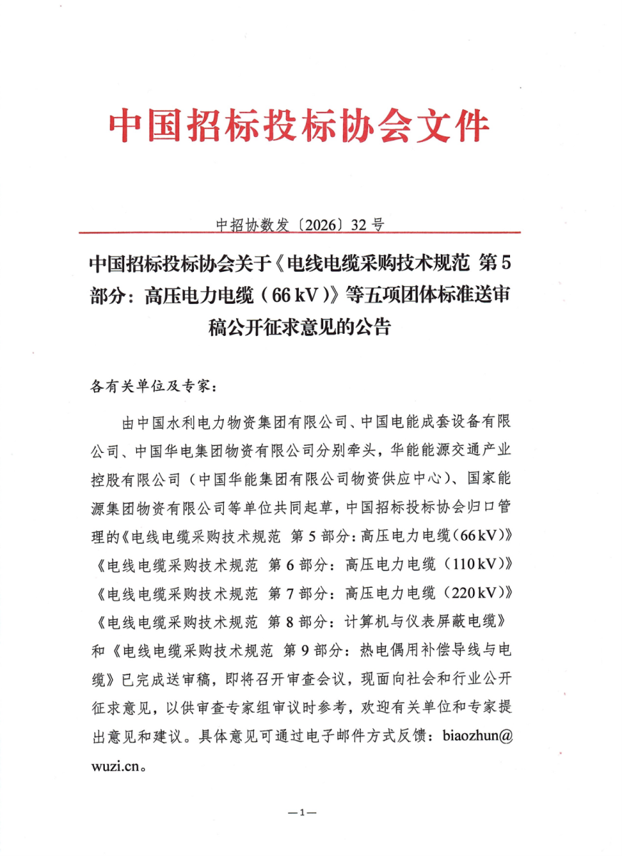 中招协《电线电缆采购技术规范》四项团标